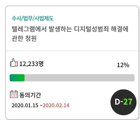 N번방 스너프 필름/성착취 사건에 관한 국민동의 청원이야.
