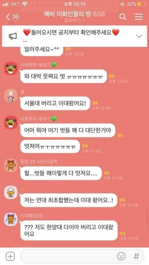 ㅉㅉ여대 왜이러냐 서울대 연대 버리고 왔다 ㅇㅈㄹ