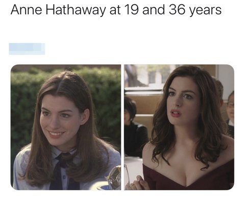 앤 해서웨이가 19살일 때와 36살일 때의 차이점은?