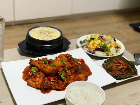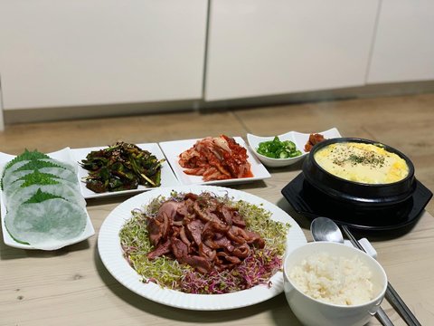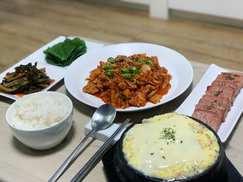 돼지고기김치볶음, 치즈계란찜, 스팸구이