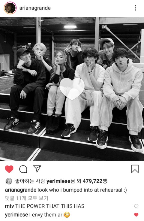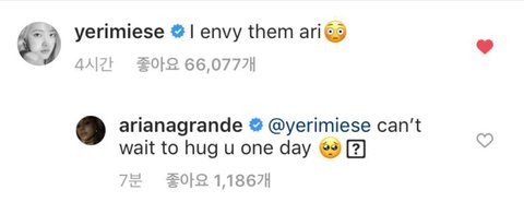 아리아나가 답글 달았음 ㅇㅅㅇ 아리아나가 팔로우한 유일한 한국인이 예리