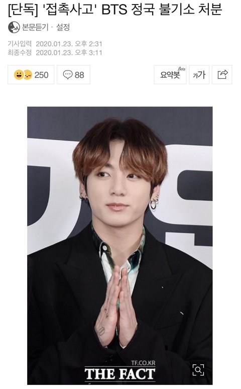 조금만 생각해보면 불기소 예상 가능한거아냐? 큰 인명피해없고 피해자와 원만한합의, 사고후 본인과실 인정 경찰의 절차에 따라 사고 후처리 입건은 검찰로 사건이 이관되는거지 구속되거나 기소확정도 아닌데 범죄자 취급 신호위반으로 법을 어긴 범법이지만 범죄자는 아닌데 안티들 여론몰이 하려고 범죄돌 이지랄
