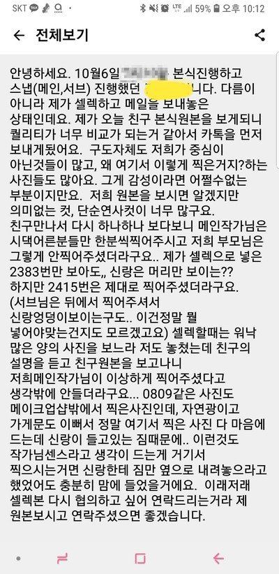 저도 실장님께 사진셀렉 다시하고싶다고 말씀드렸어요.