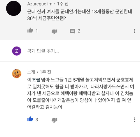 저런거 욕하는거 거의 남자임ㅋㅋ 요즘군대 편해졌다고 욕하는거 99퍼 남자