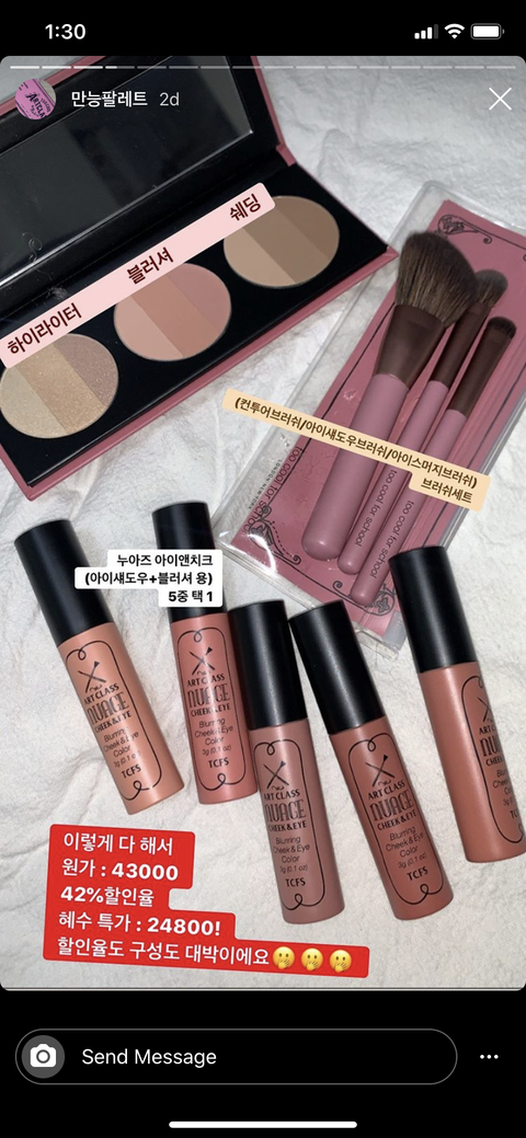 싸고 구성도 괜찮은데 초보한테 추천해줄만한 구성은 아님.. 초보라면 쿠션 혹은 파데╋아이브로우╋립╋뷰러나 마스카라 이정도가 필수템으로 필요할것같은데 블러셔는 그렇다 쳐도 하이라이터 섀딩은 보통 어느정도 화장에 익숙하고 풀메를 하는 사람들한테 필요한 제품이라..