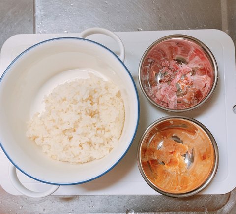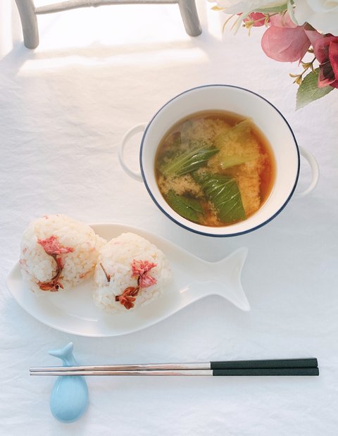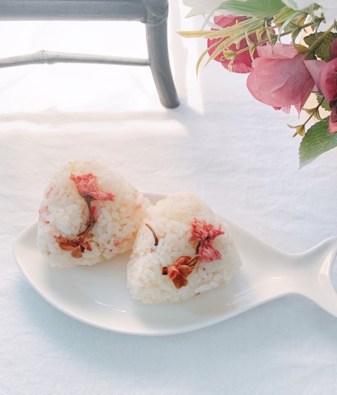 주먹밥에 얹어주면 간단하게 벗꽃 주먹밥이 된다.