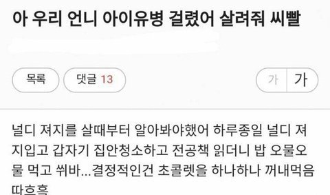 아이유병 한참 돌고 식을 때쯤 내가 뒤늦게 아이유병 걸려서 밥 입 다물고 오물오물 먹는거 했는데 좋은 식습관으로 바뀜 원래 약간 쩝쩝대는 경향?이 있었거든