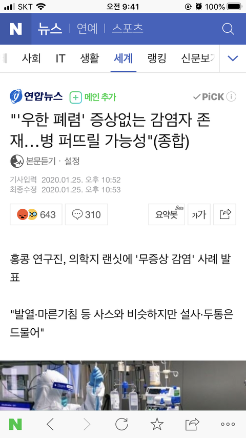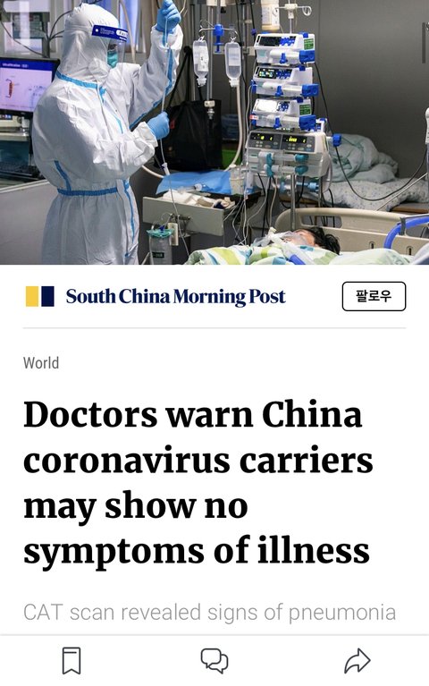 원본 기사 읽어 보니까 변종이 아니라 감염이 되어도 기침과 같은 외부 반응이 나타나지 않을 수도 있다는 말이래 변종 발생과는 다른 이야기, SCMP 원본 기사 첨부함