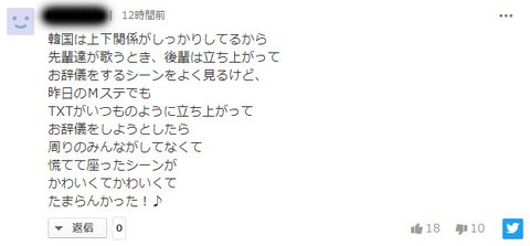 인사를 하는 장면을 자주 보는데 어제 엠스테에서도 TXT가 항상 그렇듯이 일어서서