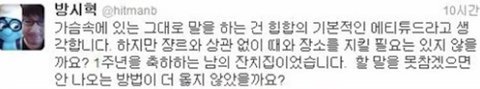 이 일이 있고 난 후에 방시혁이 SNS에 글을 올림