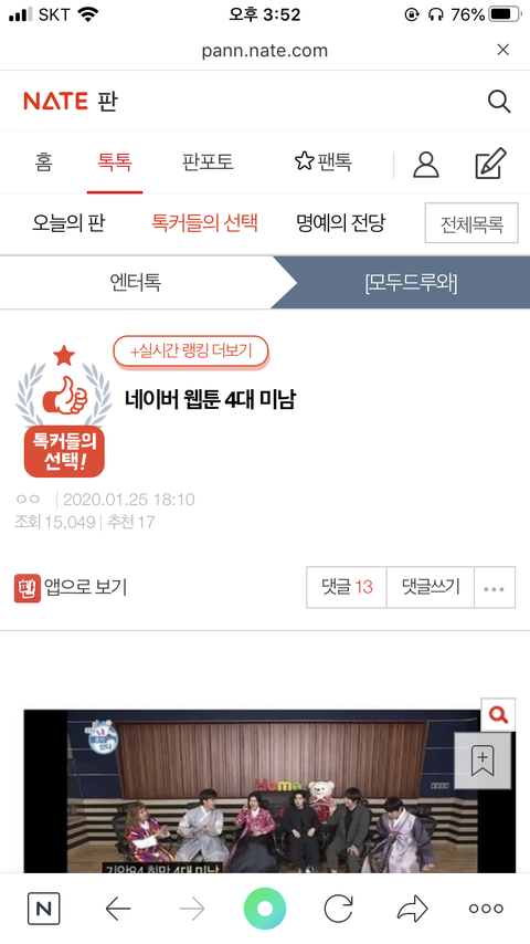 정확하게는 이 댓글 보고 쓰는 거 나도 이 생각하고 저 글 들어갔거든ㅋㅋㅋㅋ