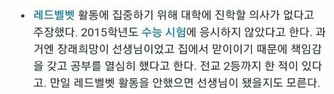 그리고 슬기는 7년동안 연습생 생활하면서 안산에서 왕복하면서 연습실 다니면서 하루종일 연습하고 시험기간 2주전부터 연습쉬고 과외하면서 공부도 같이 했다고 함