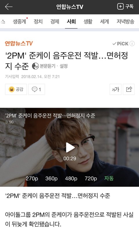 참고로 같은 투피엠 멤버 닉쿤도 음주운전 해서 면허정지 당한 적 있음;;;