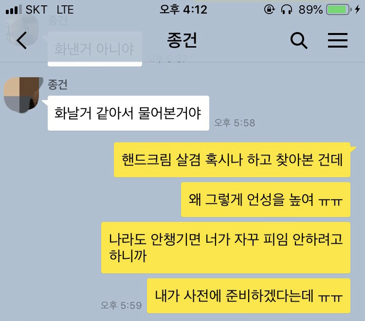그가 했던 행동들은 엄연히 데이트폭력이었고, 전 진심으로 사과를 받고 싶었는데 그는 전혀 미안하다고 하질 않았습니다. 그저 제가 위의 상황들에 대해서 문제점을 짚어주면 “내가 섹스 때문에 널 만나는 거 같아? 가만 보면 너는 날 진짜 안 사랑하는 거 같아”라고 말했습니다.