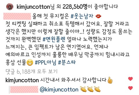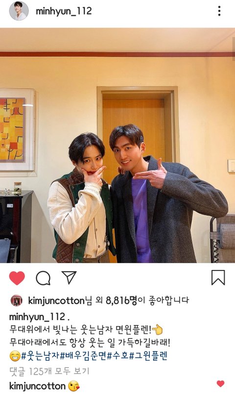 그리고 백민hyun 배우 인별에도 준면이 귀여운 이모티콘 댓ㅋㅋㅋ 귀여워