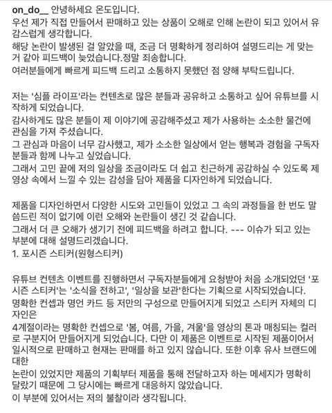 온도가 해명문에서 스티커 자체의 디자인은 4계절이라는 컨셉으로 톤과 매칭되는 컬러로 구분지어 만들어지게 됐고 이 제품은 이벤트로 시작된 제품이어서 일시적으로 판매하고 (2018년부터 판매)