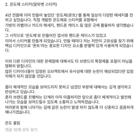 “아무리 다른 제품 디자인이랑 비슷해도 폰트 다르고 내가 만들었으니까 카피 아님 “