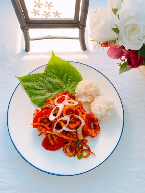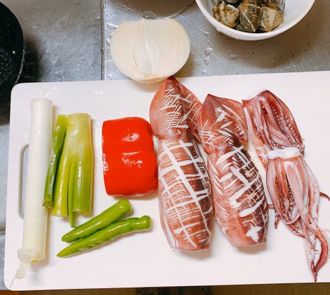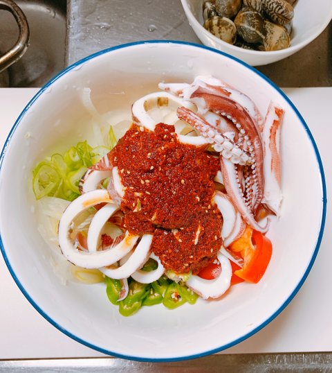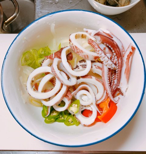 그래서 한마리만 오징어 링 송송~ 야채 송송~