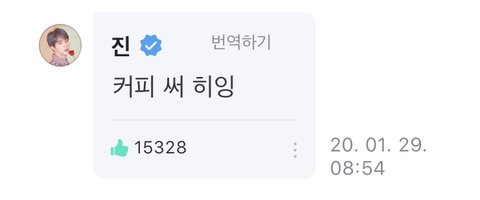 띄워주는 글에는 단호박 댓글달면서 평범한 아침인사에 하트이모티콘을 달아주는 너란 남자ㅠㅠ나두 방탄 사랑해잉♡