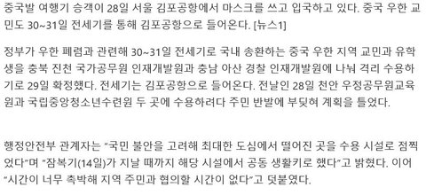 중국 우한 교민들 30~31일 전세기로 김포공항으로 들어왔다가