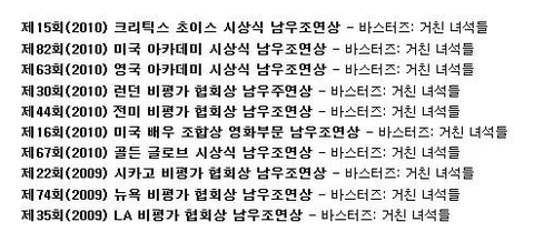 각각 2008년, 2009년, 2010년 아카데미 남우주연상을 수상함.