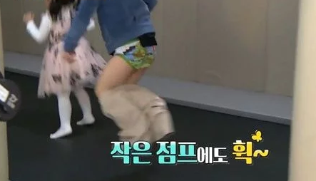 트램블린 뛰는데 자꾸 바지가 내려가고...