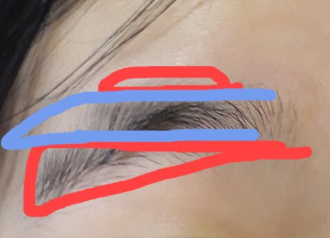 사진 저장한 거 미안 바로 지웠음 빨간 부분 눈썹칼로 깎고 숱치는 거는 유튜브에 나와있음 그릴 때는 파란색으로 그려진 것처럼 그려봐 너한테 맞는 모양이 뭔지 몰라서 일단 일자로 했음