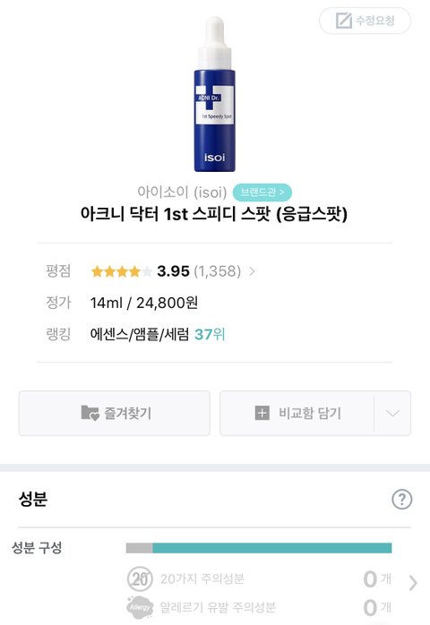 여행갈때 가져가기도 불편하고 스팟제품은 통은 큰데 내용물이 그 통에 반도 안차있어서 거의 다 쓰면 스포이드로 안나와서 불편해ㅜ