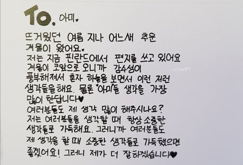 2020 윈터패키지에서 아미한테 쓴 편지를 소리 내어 읽는 콘텐츠가 있었음