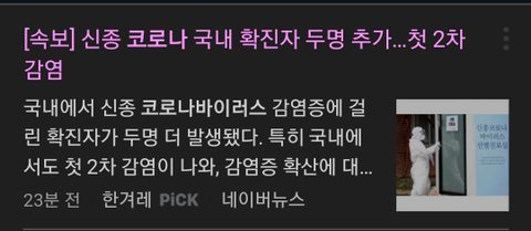 {긴급} 국내 코로나바이러스 감염자 2명 추가됬대!!