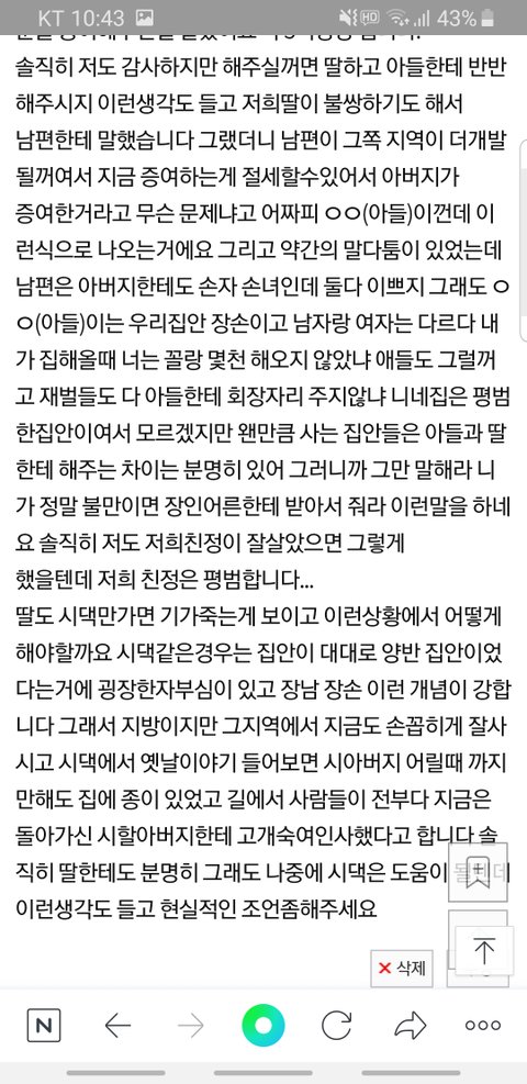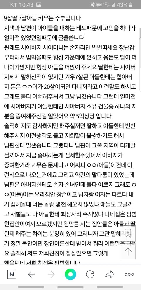 남편은 아들이 나중에 공부를 잘하기를 원하지도 않아요 중학교때쯤 유학보내고 거기서 대학교나와서 다시 들어오면 취업은 시아버지가 시켜주실거고 거기서 경험 쌓고 자기회사 물려받으면 된다는 생각이에요 현실적으로 아들을 시댁에 안보낼수가없어요 아들은 시댁 가는걸 엄청 좋아해서 자기혼자라도 갈꺼라고 할거같고 딸을 안보낸다고하면 그러라고 할꺼같아요 딸은 안가면 나중에 더도움을 못받을꺼라는 생각이들고 남편도 자기재산 전부 아들한테 주고 시아버지가 언니나 아가씨한테 한거처럼 결혼할때 딸한테는 집만 사줄거라고 하고 이것도작은건 아니긴한데 뭐가 맞는건지를 모르겠어요 남편은 이게 당연한거라고 생각해요 딸도 자기자식이니까 사랑은 하지만