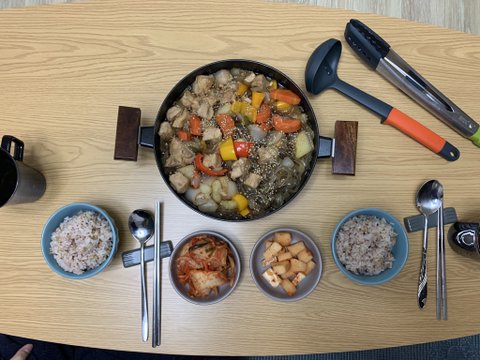 집들이 용: 김밥(바르다은선생버전), 미미떡볶이, 소불고기잡채, 오코노미야끼, 쫄면, 에그샌드위치