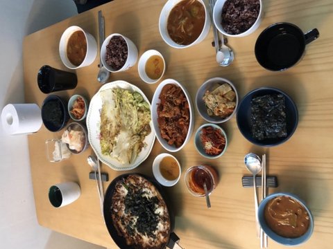 배추전 추가 제육볶음 추가 한 집밥 집들이