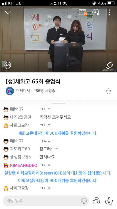 ㅋㅋ 아프리카TV로 졸업식하네