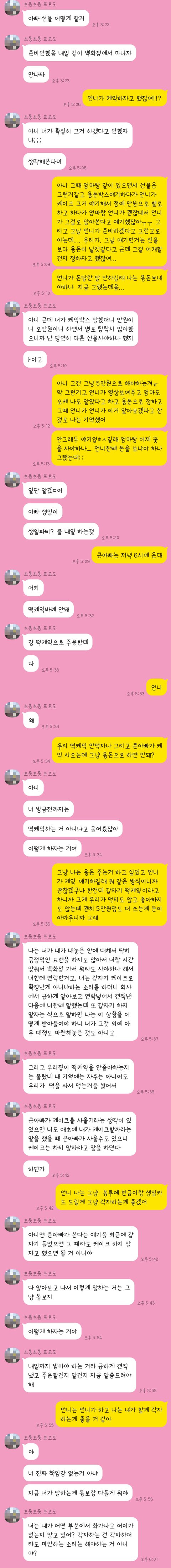 (톡 시간으로 봐서 언니가 케이크를 준비한 것은 몇 분도 되지 않았습니다. 사전에 준비없이 저와 톡하는 그 사이에 대충 알아본 것도 솔직히 저는 화가났습니다)