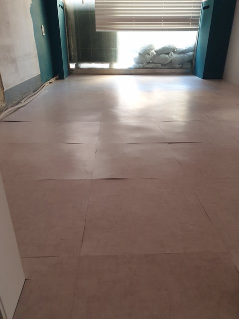 사진 보내주면서 이거 못쓴다 얘기했더니 별거 아니다 시간 지나면 가라앉아서 잘 붙을거다 하더군요. 그래서 저는 붙는게 문제가 아니라 바닥이 저렇게 울퉁불퉁한데 어떻게 영업하냐 발목나간다 라고 하였더니 와서 보고 미장을 새로하던 덧방을 하던 하겠다고 했습니다.