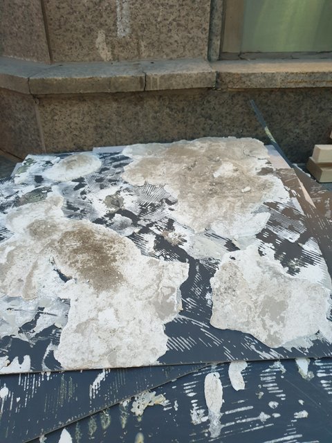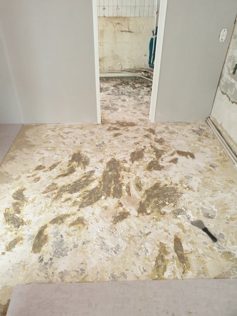 철거한 데코타일에 핸디코트가 덩오리째 떨어지네요