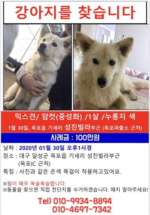 대구 외에 대구 주변 다른 지역까지도 비슷한 강아지를 목격하시면 꼭 연락부탁드립니다. 작고 사소한 제보라도 괜찮아요. 사진과 함께 제보해주시면 더더욱 도움이 많이 됩니다!