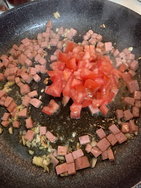 햄이 어느정도 익으면 토마토넣구 숨좀 죽을때까지