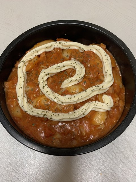 그릇에 담아서 마요네즈로 데코해주시구