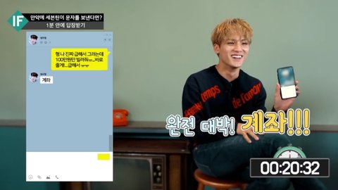 민규가 촬영장에 없는 멤버한테 100만원만 빌려달라고 카톡 하고 1분안에 답장 오는지 확인하는 미션이어서 원우한테 보냈는데 원우가 한 대답..