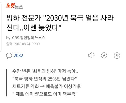 어그로 미안하고 지구온난화 심각한거 알지? 빙하가 녹으면 큰일인 이유가 수면 상승도 있지만 빙하가 녹으면 고대 바이러스, 기생충, 해충이 풀릴 수 있어 실제로 빙하에서 새로운 고대 바이러스 30종을 발견했대 13년도 1월 3일 영하 16도 20년 1월 3일 영상 4도 서울기준) 아직도 심각성을 모르겠다면 인터넷 뒤져봐 기사는 이거 외에도 있지만 일단 이거 봐주고 우리 10년뒤에 죽고 인류가 멸망한다 이 소리도 절대 과장된게 아니야 다들 심각성 좀 알아줬으면 좋겠고 https://news.v.daum.net/v/20180824093901849 기사