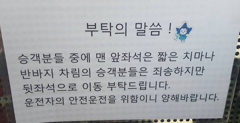 버스 운전사가 의식해서 안전운전에 방해될 수도 있으니까 짧은치마 입은 여자나 반바지 차림 여자는 뒤로 가달래;; 이거 어떻게 생각해