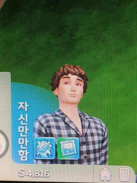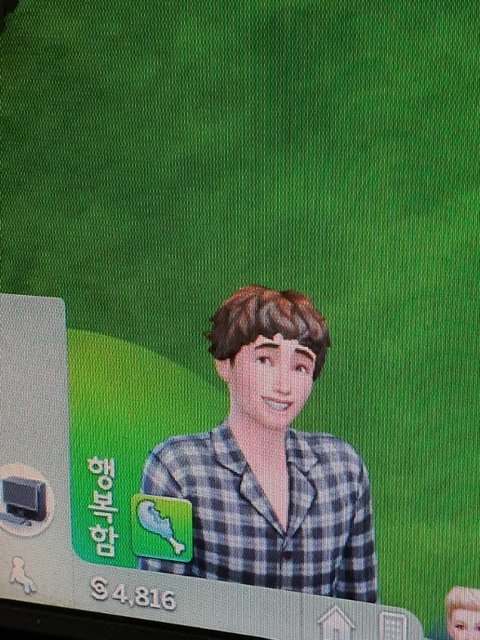 심즈4 확장팩 안사고 만든 남자 심인데 만들고나니까 누구 닮은거같은데 누굴닮았는지 모르겠음.. 누구닮은거같음? (컴캡쳐가안되서카메라로찍음ㅠ)