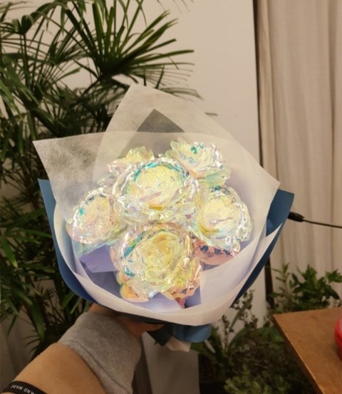이 꽃 별로야?? 아까도 올렸는데 반응이 별로 없길랭ㅜㅜ 내 눈에는 이쁜데 다른 사람들 눈엔 어떤지 알고싶어 선물 주려는데 led불도 나오는거야 3개로 꽃다발 만들어 줄라궁 추반이라도 해쥬랑..