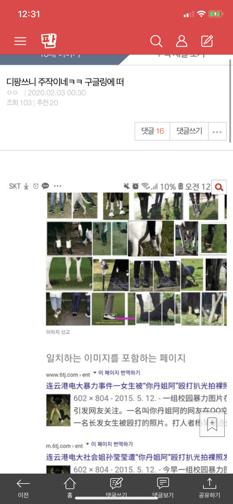 6. 근데 쓰니가 갑자기 의문의 멍든 다리 사진 올렸다가 빛삭함 근데 그게 때리는 사람이 맞는 사람 찍는 구도여서 판은 뒤집어짐