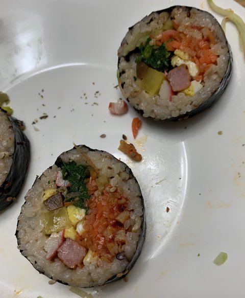 먹다 찍어서 지저분 하지만 남은 밥으로 최선을 다해준 김밥쓰