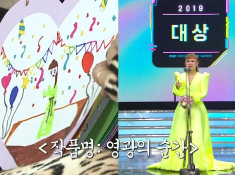진짜 ㅋㅋㅋㅋ박나래 말처럼 박나래 상 받을 때 모습을 그려준 듯ㅋㅋㅋ