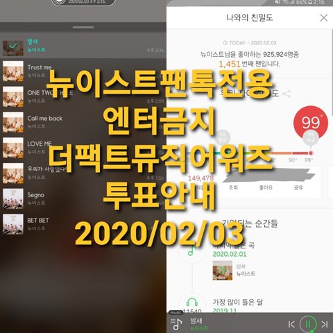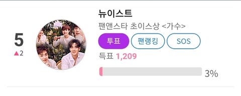 팬앤스타앱 실행 - 메인에 초이스상 가수 -뉴이스트 투표