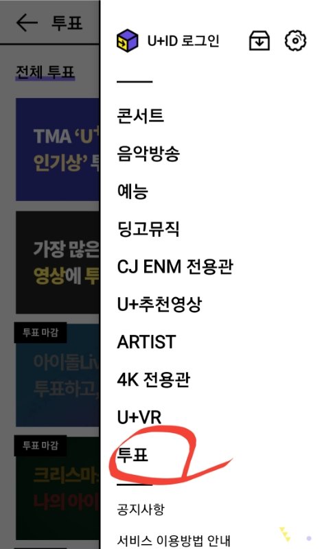 U+아이돌Live 앱 실행 - 투표 - 인기상 뉴이스트 투표